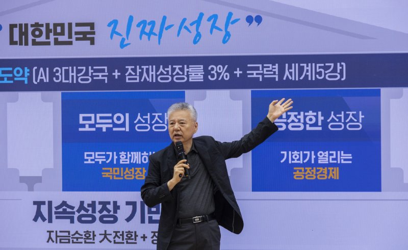 이재명 정부의 국정 청사진을 마련한 국정기획위원회 내 경제 1분과에서 활동했던 홍성국 전 민주당 최고위원은 19일 민주당 의원 공부모임 '경제는 민주당' 세미나 연단에 서서 잠재성장률 반등 방안으로 산업현장에 AI 직접 적용을 제시했다.