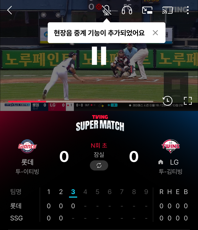 현장음 중계는 올해 KBO 리그 야구 개막과 함께 선보인 다양한 중계 서비스 업그레이드에 이은 새로운 시청 옵션이다. 해설 없는 타격음과 포수 미트 소리, 관중의 함성 등 현장의 소리를 생생히 전달해 실제 야구장에 있는 듯한 몰입감을 제공한다.