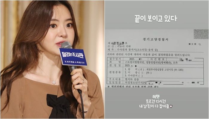 서씨는 지난 17일 사회관계망서비스(SNS)에 수사결과 통지서를 공개하며 "끝이 보이고 있다. 내 남친이 다 잡아줬다"고 알렸다.