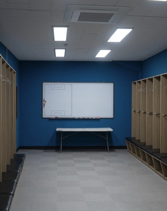 라커룸 내 노후 에어컨은 신형으로 바꿨으며, 바닥 타일과 집기류를 전면 교체했다.