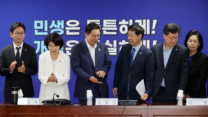 민주당과 정부는 20일 국회에서 당정협의회를 열고 새 정부의 경제성장 전략 점검에 나섰다.