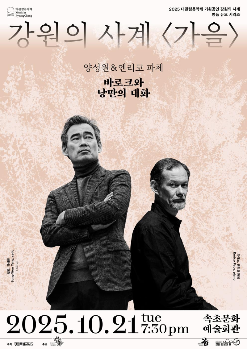 【파이낸셜뉴스 춘천=김기섭 기자】강원문화재단은 10월21일 속초에서 열리는 2025 대관령음악제 기획공연 강원의 사계 '가을’ 공연 티켓을 오는 21일 오후 2시부터 오픈한다.