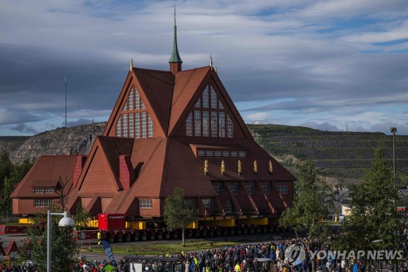 AP·dpa통신에 따르면 19일(현지시간) 스웨덴 최북단 키루나에서 마을 명물인 목조 교회를 옮기는 작업이 시작됐다.