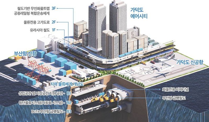 먼저 복합운송 물류회랑 구축 방안은 가덕신공항~부산신항~유라시아 철도를 유기적으로 연결하는 ‘고속 물류 네트워크’를 구축, 운영해야 한다는 내용이다. 거점 간 화물 이동시간을 두바이 수준인 4시간 이내로 단축하고 해상~항공~철도 간 컨테이너 셔틀 서비스, 복합운송 시스템 도입 통한 원스톱 물류서비스 운영 필요성을 강조했다.