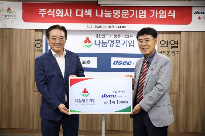 [파이낸셜뉴스] 부산사회복지공동모금회(부산사랑의열매)는 지난 19일 주식회사 디섹이 1억 1000만원을 기부하며 나눔명문기업 부산 88호로 가입했다고 20일 밝혔다.