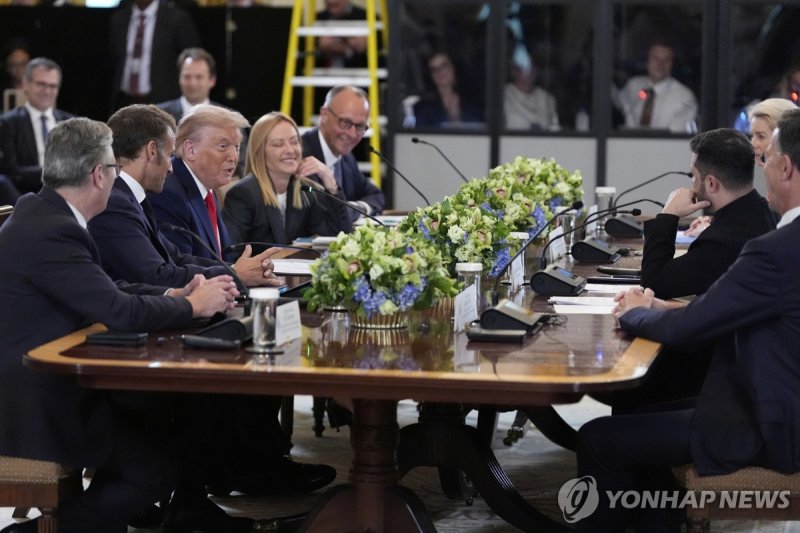 (서울=연합뉴스) 서혜림 기자 = 도널드 트럼프 미국 대통령과 볼로디미르 젤렌스키 우크라이나 대통령, 유럽 정상들이 우크라이나의 안전보장을 위해 한국식 '완충지대'를 조성하는 방안을 주요 의제로 논의한 것으로 알려졌다.