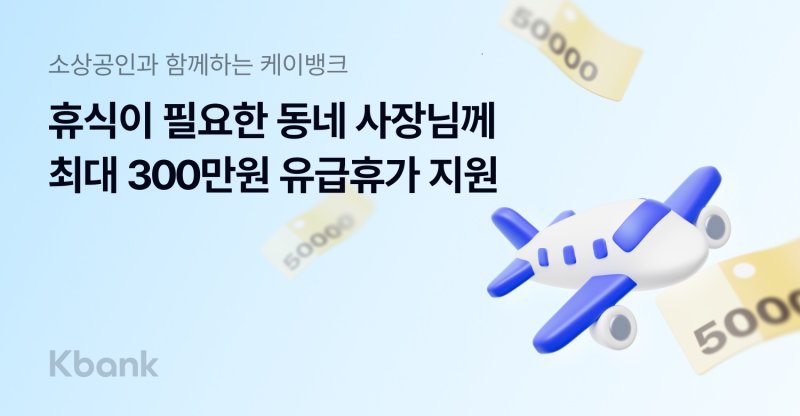 [파이낸셜뉴스] 케이뱅크가 소상공인·자영업자의 '휴가비'를 지원하는 캠페인을 연다고 20일 밝혔다.