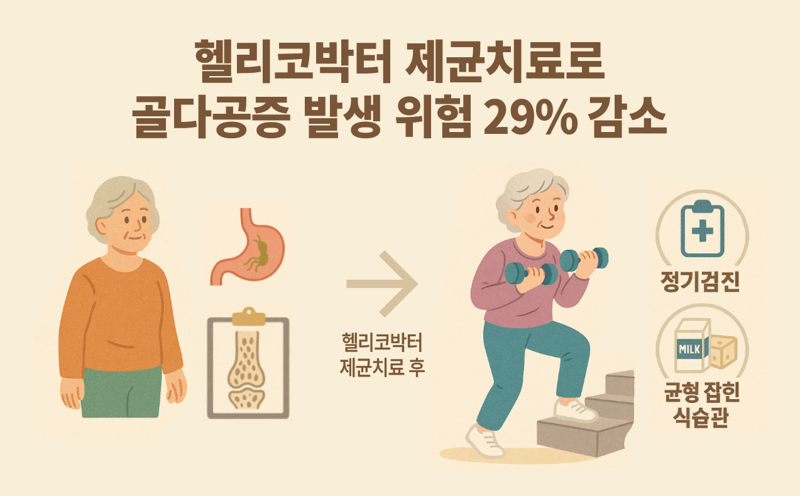 최근 위암 등 위장 질환의 주요 원인으로 알려진 헬리코박터 파일로리균이 뼈 건강에도 영향을 미치며, 이를 제거하는 치료가 골다공증 예방에 효과적이라는 사실이 오랜 연구 끝에 확인됐다.
