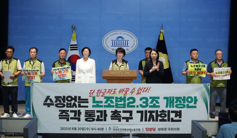 공공운수노조도 "노조법은 수년간 이어진 절박한 목소리와 현장의 분노, 법 사각지대에서 방치된 수많은 노동자들의 외침의 결실"이라며 "개정안 원안 그대로 단 한 글자도 바뀌지 않고 통과되길 요구한다. 모호한 조항과 애매한 책임으로는 현장을 바꿀 수 없다"고 강조했다.