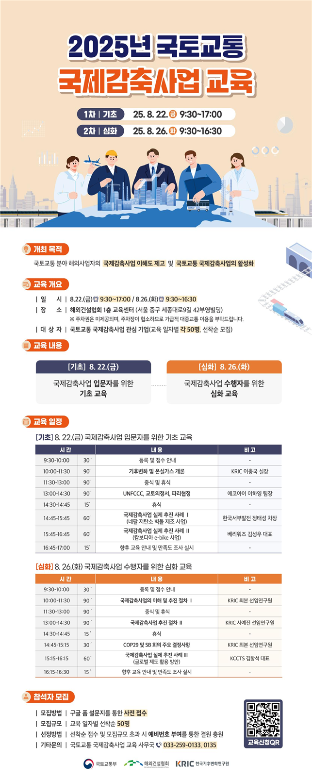 [파이낸셜뉴스] 국토교통부는 오는 22일부터 2회에 걸쳐 해외건설 교육센터에서 '2025년 국토교통 국제감축사업 교육'을 진행한다고 21일 밝혔다.