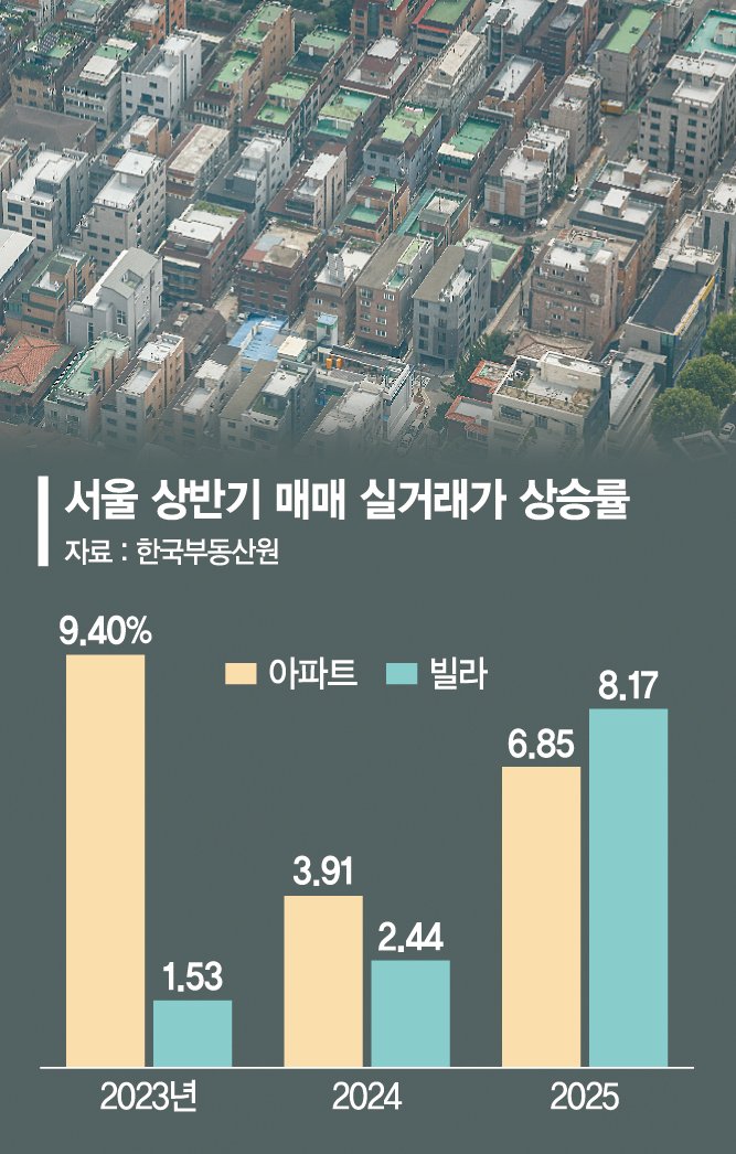 올 상반기 누계 상승률도 빌라 약진이 돋보였다. 서울 빌라는 이 기간 8.17% 올랐다. 같은 기간 서울 아파트 매매 실거래지수 상승률은 6.85%에 그쳤다.