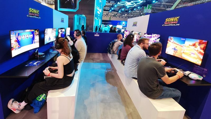 한편 삼성디스플레이는 세가 부스 외벽에 65, 77형 QD-OLED TV를 설치했다. 화려한 그래픽의 소닉 레이싱 크로스월드를 최고의 화질로 소개한다는 전략이다.