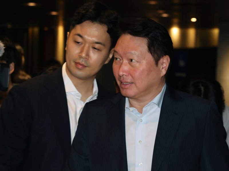 (서울=뉴스1) 원태성 기자 = 최태원 SK그룹 회장이 직원들에게 직장에서의 행복과 성과급에 대해 이야기 하며 "(성과급이) 5000%까지 늘어나도 행복해지는 것은 아니다"라고 충고했다.