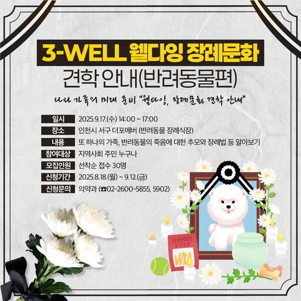 참가자들은 9월 17일 오후 2~5시 인천에 있는 반려동물 장례식장을 방문해 장례 절차(입관·화장·봉안·추모) 등에 대한 설명을 듣는다.