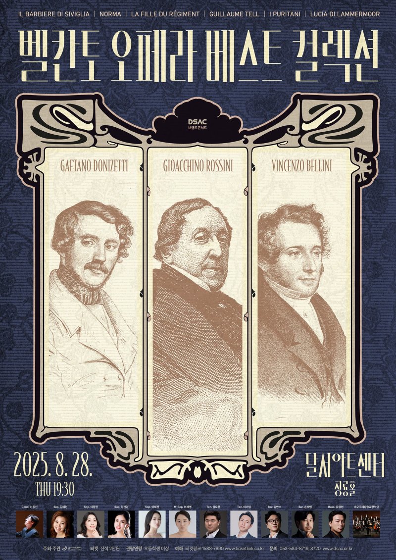 21일 달서문화재단 달서아트센터에 따르면 이번 공연은 로시니, 벨리니, 도니체티의 대표 아리아와 중창을 한 번에 감상할 수 있는 특별한 무대가 될 예정이다.