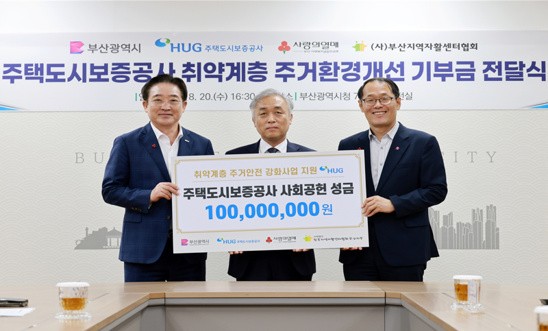 [파이낸셜뉴스] 주택도시보증공사(HUG)가 부산지역 취약계층의 주거안전 강화를 위해 성금 1억원을 전달했다고 21일 밝혔다.