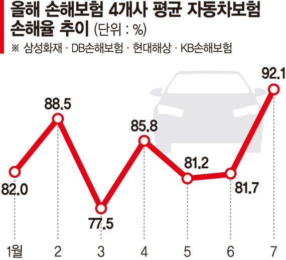 보험업계는 △집중호우로 인한 차량 침수 피해(약 393억원) △폭염으로 인한 차량 운행량 증가 △보험료 인하 △경상환자 과잉진료 등이 겹치면서 손해율이 급등한 것으로 분석했다.