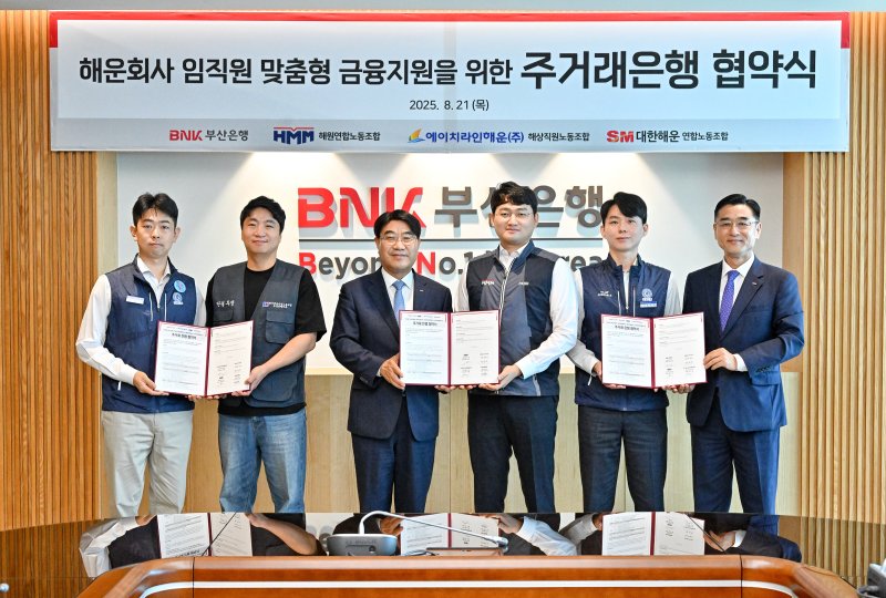 이날 협약식에는 방성빈 부산은행장을 비롯해 김대성 부산은행 노동조합 위원장, 전정근 HMM 해원연합노동조합 위원장, 권기흥 에이치라인해운 해상직원노동조합 위원장, 김수헌 SM그룹대한해운연합 노동조합 위원장 등이 참석해 상호 협력을 약속했다.