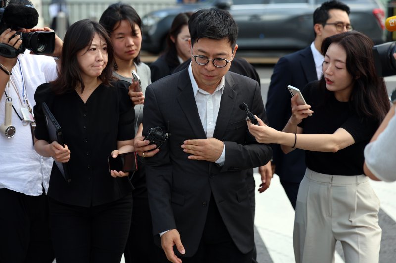 주 원장은 이날 오전 10시 5분쯤 특검 사무실 앞에 출석해 "'윤핵관' 의원들한테 후원금 전달하신 것 맞냐", "박성중 전 의원한테 500만 원 왜 후원했냐"는 취재진의 질문에 입을 꾹 다물었다.