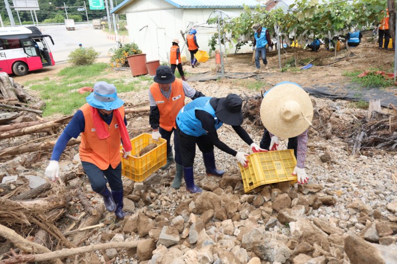 안산도시공사 임직원들은 지난달 30일 가평군 상면의 한 포도 농가를 찾아 토사와 바위 등을 제거하는 등 수재민의 일상회복을 도운데 이어 이달 20일 가평군 조종면의 한 침수 주택에서 토사물 제거 봉사활동을 했다.