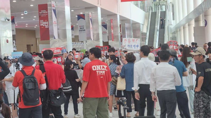 이날 국민의힘 전당대회는 오후 2시 20분 포문을 열었다. 수많은 지지자들이 당대표·최고위원 후보에 힘을 싣기 위해 현장을 찾아 인산인해를 이뤘다. 섭씨 33도에 이르는 습하고 무더운 날씨에도 불구하고 목청이 떠나가라 지지하는 후보들의 이름을 연호했다.