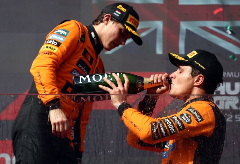 장군멍군입니다. 그의 동료 노리스는 1라운드 호주 그랑프리에서 1위로 결승선을 통과하며 25점을 받은 후 4라운드까지 2~3등을 기록하는 등 포디움에 밥 먹듯 올랐습니다. 그가 포디움을 놓친 경기는 5라운드 사우디아라비아 서킷(4위)와 10라운드 캐나다(DNF, Did not Finish)뿐입니다. 노리스는 전반기 1위만 5번 기록하는 등 쾌조의 질주를 보이고 있습니다.