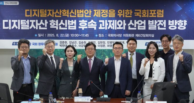 이날 행사는 지난 2월부터 총 6회에 걸쳐 진행된 '디지털자산혁신법안 제정을 위한 국회 연속 포럼'의 마지막 회차로 디지털자산혁신법 제정 이후 후속 과제와 글로벌 경쟁력 강화 방안을 논의했다.
