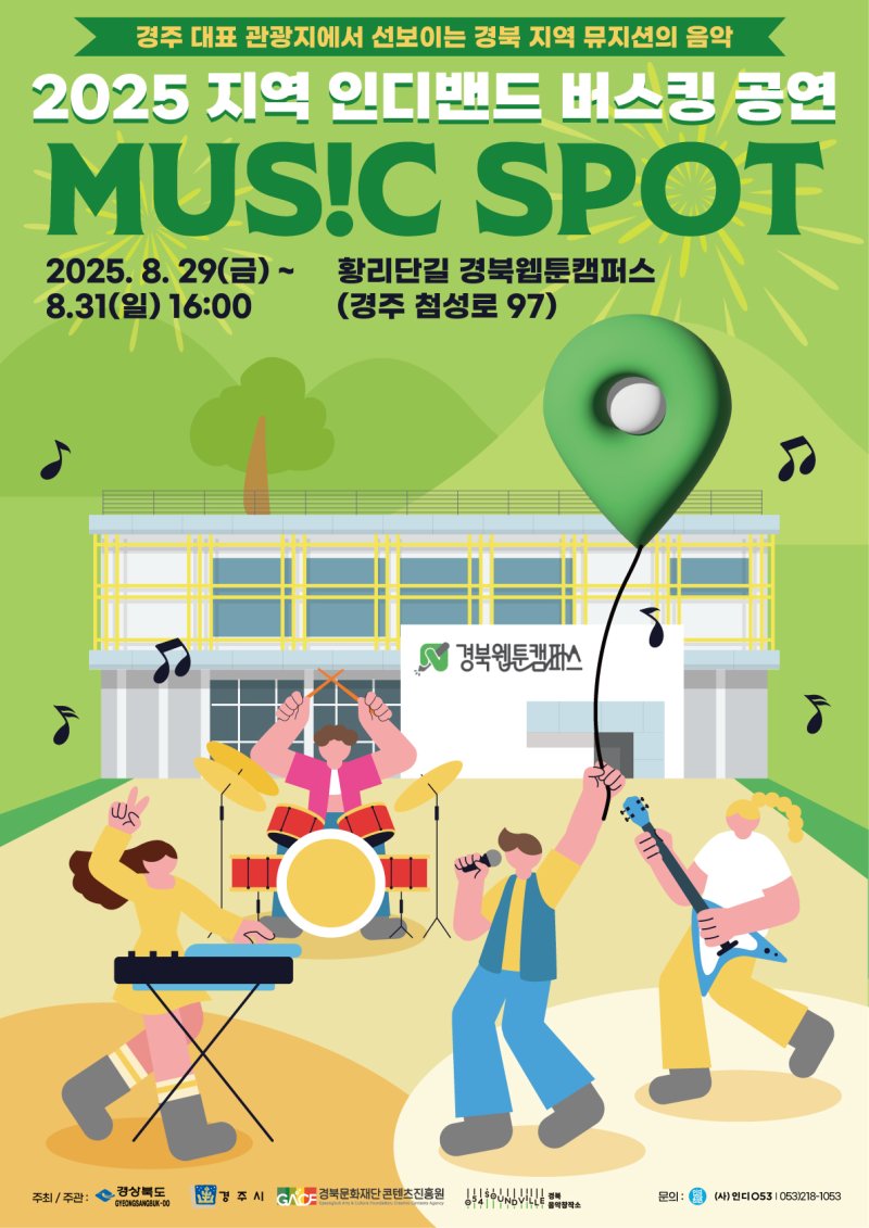 황리단길 인근 경북웹툰캠퍼스 앞에선 지역 인디밴드 버스킹 공연 'MUSIC SPOT'이 펼쳐진다.