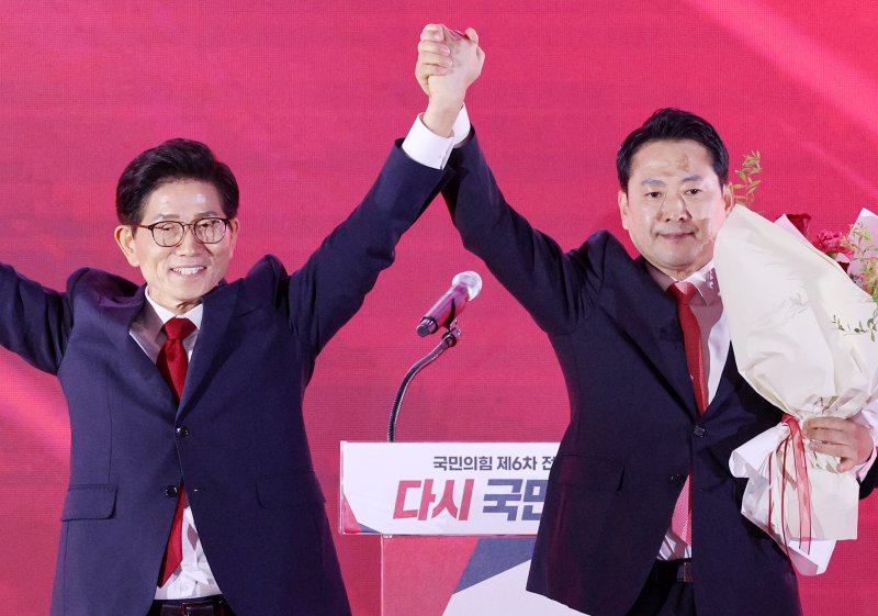 김문수(왼쪽)·장동혁 국민의힘 당대표 후보가 22일 오후 충북 청주시 오스코에서 열린 제6차 전당대회에서 결선 진출에 성공한 뒤 두 손을 번쩍 들어 기뻐하고 있다. 2028.8.22/뉴스1 ⓒ News1 신웅수 기자 김문수(왼쪽)·장동혁 국민의힘 당대표 후보가 22일 오후 충북 청주시 오스코에서 열린 제6차 전당대회에서 결선 진출에 성공한 뒤 악수를 나누고 있다. 2028.8.22/뉴스1 ⓒ News1 신웅수 기자 김문수(왼쪽)·장동혁 국민의힘 당대표 후보가 22일 오후 충북 청주시 오스코에서 열린 제6차 전당대회에서 결선 진출에 성공한 뒤 손을 잡고 있다. 2028.8.22/뉴스1 ⓒ News1 신웅수 기자 김문수(왼쪽)·장동혁 국민의힘 당대표 후보가 22일 오후 충북 청주시 오스코에서 열린 제6차 전당대회에서 결선 진출에 성공한 뒤 당원들에게 인사하고 있다. 2028.8.22/뉴스1 ⓒ News1 신웅수 기자 김문수 국민의힘 당대표 후보가 22일 오후 충북 청주시 오스코에서 열린 제6차 전당대회에서 물을 마시고 있다. 왼쪽부터 장동혁, 조경태, 김문수, 안철수 후보. (공동취재) 2025.8.22/뉴스1 ⓒ News1 신웅수 기자 안철수(왼쪽부터), 김문수, 조경태, 장동혁 국민의힘 당대표 후보가 22일 오후 충북 청주시 오스코에서 열린 제6차 전당대회에서 기념 촬영을 하고 있다. 2025.8.22/뉴스1 ⓒ News1 신웅수 기자 김문수 국민의힘 당대표 후보가 22일 오후 충북 청주시 오스코에서 열린 제6차 전당대회에서 비전발표를 하고 있다. (공동취재) 2028.8.22/뉴스1 ⓒ News1 신웅수 기자 장동혁(왼쪽부터), 조경태, 김문수, 안철수 국민의힘 당대표 후보가 22일 오후 충북 청주시 오스코에서 열린 제6차 전당대회에서 개표 결과를 기다리고 있다. (공동취재) 2025.8.22/뉴스1 ⓒ News1 신웅수 기자 송언석 국민의힘 비상대책위원장 겸 원내대표가 22일 오후 충북 청주시 오스코에서 열린 국민의힘 제6차 전당대회에서 당기를 흔들고 있다. 이번 전당대회에서는 김문수·안철수·장동혁·조경태 후보가 당대표에 출마했으며 이날 과반 득표자가 없으면 1, 2위 후보 간 결선투표를 거쳐 오는 26일 대표를 선출한다. 2025.8.22/뉴스 2025.8.22/뉴스1 ⓒ News1 신웅수 기자 장동혁 국민의힘 당대표 후보가 22일 오후 충북 청주시 오스코에서 열린 제6차 전당대회에서 비전발표를 하고 있다. (공동취재) 2028.8.22/뉴스1 ⓒ News1 신웅수 기자 김문수, 장동혁 국민의힘 대표 후보가 22일 오후 충북 청주 오스코에서 열린 국민의힘 제6차 전당대회에서 결전 진출에 성공한 뒤 손을 들어 인사하고 있다. (공동취재) 2025.8.22/뉴스1 ⓒ News1 신웅수 기자 김문수, 장동혁 국민의힘 대표 후보가 22일 오후 충북 청주 오스코에서 열린 국민의힘 제6차 전당대회에서 결전 진출에 성공한 뒤 손을 들어 인사하고 있다. (공동취재) 2025.8.22/뉴스1 ⓒ News1 신웅수 기자 김문수(왼쪽)·장동혁 국민의힘 당대표 후보가 22일 오후 충북 청주시 오스코에서 열린 제6차 전당대회에서 결선 진출에 성공한 뒤 두 손을 번쩍 들어 기뻐하고 있다. 2028.8.22/뉴스1 ⓒ News1 신웅수 기자 김문수(오른쪽)·장동혁 국민의힘 당대표 후보가 22일 오후 충북 청주시 오스코에서 열린 제6차 전당대회에서 결선 진출에 성공한 뒤 당원들에게 인사하고 있다. 2028.8.22/뉴스1 ⓒ News1 신웅수 기자 국민의힘 당 대표 결선투표 진출자 김문수, 장동혁 후보가 22일 오후 충북 청주시 오스코에서 열린 제6차 전당대회에서 발언을 마친 후 지지자들과 인사하고 있다. (공동취재) 2025.8.22/뉴스1 ⓒ News1 신웅수 기자 김문수(왼쪽)·장동혁 국민의힘 당대표 후보가 22일 오후 충북 청주시 오스코에서 열린 제6차 전당대회에서 결선 진출에 성공한 뒤 당원들에게 인사하고 있다. 2028.8.22/뉴스1 ⓒ News1 신웅수 기자 국민의힘 당 대표 결선투표 진출자 김문수, 장동혁 후보가 22일 오후 충북 청주시 오스코에서 열린 제6차 전당대회에서 발언을 마친 후 단상에서 내려오고 있다. (공동취재) 2025.8.22/뉴스1 ⓒ News1 신웅수 기자 (서울=뉴스1) 민경석 신웅수 기자 = 국민의힘 전당대회 결선에 김문수·장동혁 후보가 진출하며 '반탄파(탄핵반대파)' 양자 대결이 성사됐다. 대선 패배 이후 당의 혼란이 가중되는 가운데 당원들의 선택은 혁신보다는 '결집'이었던 것으로 풀이된다.