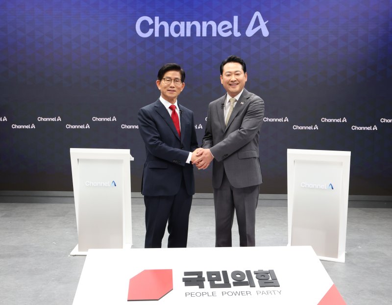 김문수·장동혁 국민의힘 당 대표 후보는 23일 오후 서울 종로구 채널A 스튜디오에서 진행된 '국민의힘 전당대회 당 대표 후보자 결선 토론회'에 참석했다.