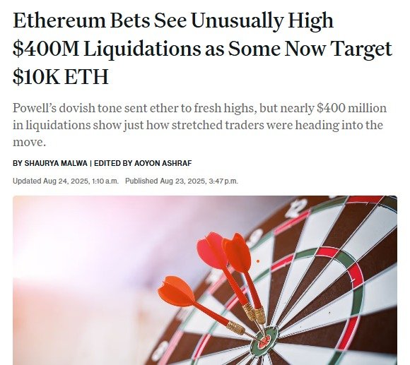 이더리움이 사상 최고치를 경신하자 3억8800만 달러의 청산 매물이 나왔다. 이는 시장 전체의 청산 매물 7억6900만달러의 약 절반이다.