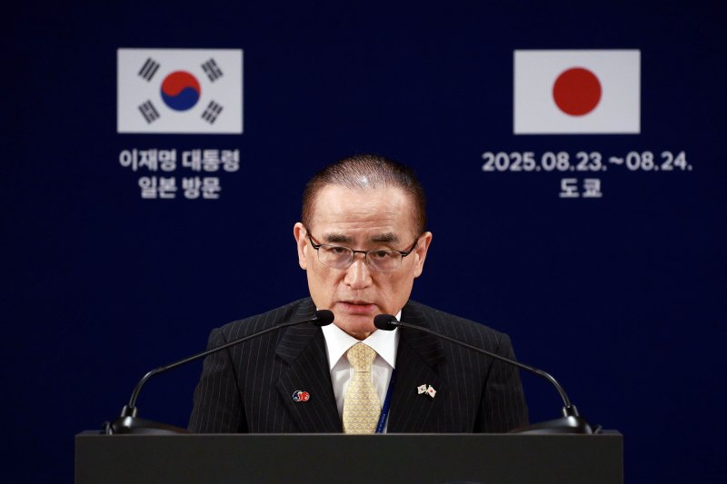 [도쿄=뉴시스] 고범준 기자 = 위성락 국가안보실장이 24일(현지 시간) 일본 도쿄 한 호텔에 마련된 프레스센터에서 이재명 대통령의 한일 정상회담 관련 브리핑을 하고 있다. 2025.08.24. bjko@newsis.com <저작권자ⓒ 공감언론 뉴시스통신사. 무단전재-재배포 금지.> /사진=뉴시스화상 저작권자ⓒ>