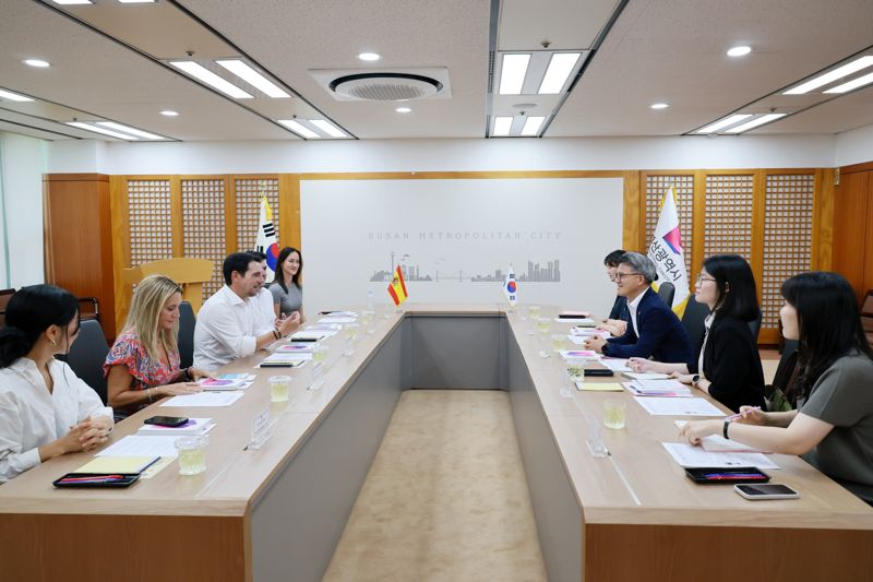 부산시는 지난 22일 스페인 카스텔데펠스 마누엘 레예스 로페스 시장과 길예르모 마사나 로메로 시의원이 부산을 찾아 두 도시 간 미식 문화 교류 협력 방안을 논의했다고 24일 밝혔다.