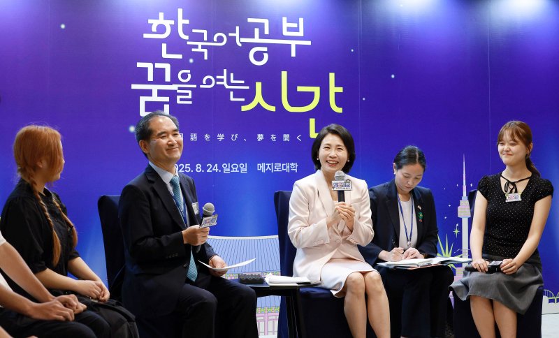 이어 "일본 청년들 사이에서 케이팝, 케이-드라마의 인기가 음식과 패션, 뷰티 등 케이-라이프스타에 대한 관심으로 이어지고, 그 관심이 한국 문화의 뿌리이자 정신인 한국어로 향하고 있다고 들었다"며 "한국어를 배우는 것은 단순한 언어의 습득을 넘어 한국어가 담고 있는 한국의 문화, 한국인의 정체성을 이해하는 과정으로 한일 청년 상호간의 이해와 우호 정서를 심화하는 지름길이라고 생각한다"고 했다.
