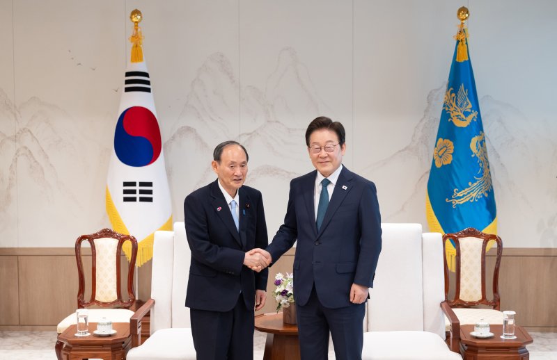 [파이낸셜뉴스] 이재명 대통령이 24일(현지시간) 도쿄에서 스가 요시히데 전 일본 총리와 일한의원연맹 간부진, 노다 요시히코 입헌민주당 대표를 잇달아 접견하고 "의원외교를 통해 한일 협력을 더욱 가속하겠다"고 밝혔다.