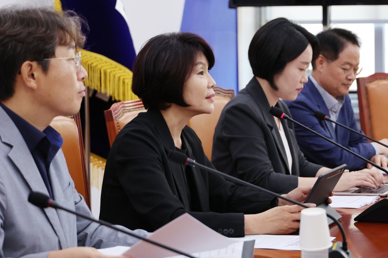 한정애 민주당 정책위의장은 이날 간담회에서 "윤 정부는 추가경정예산 투입으로 세입 변경을 하는대신 교부세나 교부금으로 국민과 지방정부에 부담을 전가하거나 기금 여유재원을 활용하며 국고 손실을 감수했다"며 전임 정부의 재정 운용 능력을 '낙제점'이라 평했다.