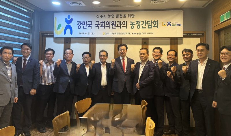 [진주=뉴시스] 정경규 기자 = 국민의힘 강민국 의원(경남 진주시을·경남도당 위원장)은 23일 진주축협 한우프라자에서 진주시 농축협운영협의회와 농협 진주시지부 초청으로 진주시 농업 발전을 위한 간담회 자리를 가졌다고 24일 밝혔다.