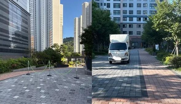 이어 "입주민들의 차량은 지하로 주차하는 곳이며 지상 출입할 일이 없으며 택배 차량·이사 차량·가구 배송 차량 등 입주민들의 편의 목적으로 출입하는 차들만 지상 출입하게 돼 있다. 보통에 이러한 차들은 트럭 큰 차량이다"고 설명했다.