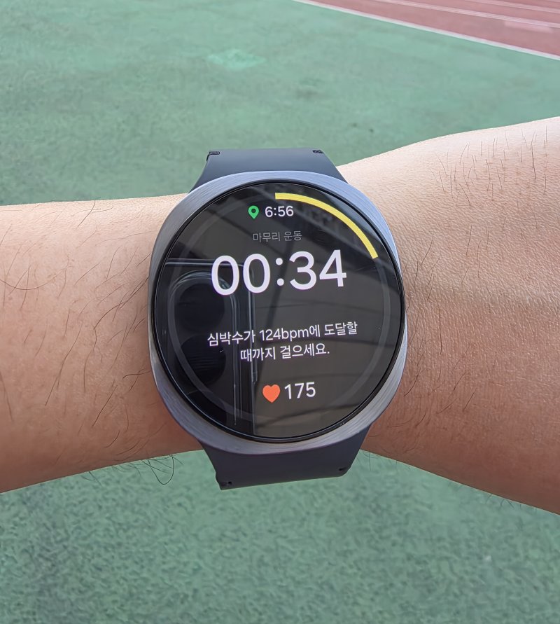기자가 착용한 갤럭시 워치8 44mm 모델은 전작과 동일한 프로세서(엑시노스 W1000)에 램(2GB)·저장공간(32GB)을 갖췄지만 새 UI 탑재로 조작이 매끄러워졌다. 본체 두께는 9.7㎜에서 8.6㎜로 얇아져 손목과 밀착감이 좋아졌다.