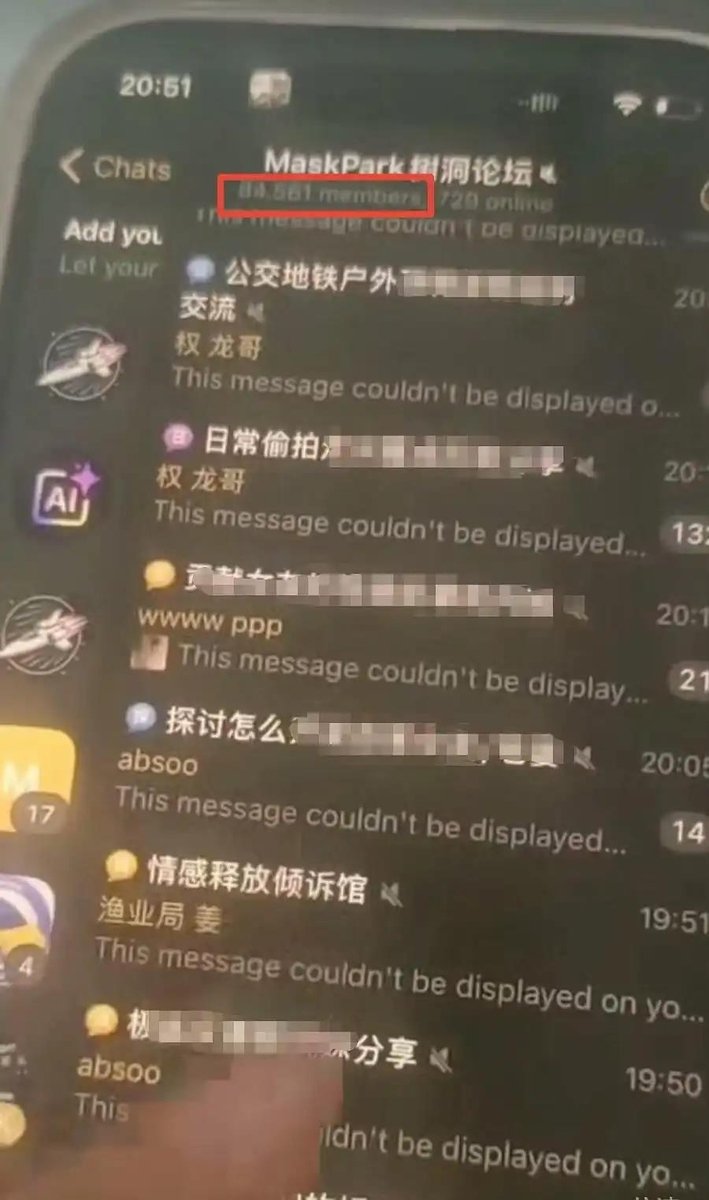 지난달 중국 남방도시보 등의 보도로 수면 위로 올라온 이 대화방에서는 지하철, 공중화장실, 쇼핑몰, 병원 초음파실 등에서 여성을 불법촬영한 영상과 사진은 물론 여자친구나 여성 가족 등을 촬영한 영상 등이 공유됐다. 일부 사용자는 피해 여성의 개인정보를 올리거나 불법촬영 장비를 판매하기도 했다. 이와 관련해 한 여성 피해자는 "전 남자친구가 성관계 중에 몰래 찍은 내 사진을 허락 없이 이 채팅방에 올리고 내 SNS 계정까지 공개했다"고 말했다.