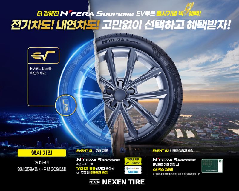 넥센타이어 관계자는 "엔페라 슈프림 EV루트는 차량 종류에 관계없이 우수한 성능을 안정적으로 제공하는 모델"이라며 "이번 프로모션을 통해 더 많은 고객이 당사의 프리미엄 제품을 직접 경험하시길 바란다"고 말했다.