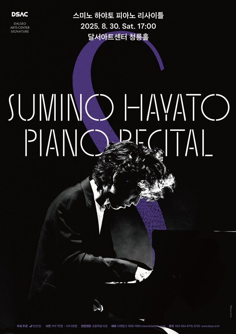 달서아트센터 관계자는 "스미노 하야토는 장르와 경계를 뛰어넘어 클래식의 새로운 가능성을 열어가는 아티스트"라며 "이번 리사이틀은 한국 관객에게 미래 클래식의 비전을 제시하는 특별한 시간이 될 것"이라고 전했다.