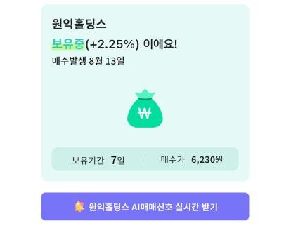또한 개별 종목에서 나의 보유 매수가를 입력하면, 나만의 매도신호도 개별적으로 받을 수 있다.