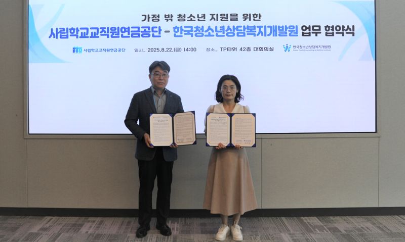 [파이낸셜뉴스] 사립학교교직원연금공단(사학연금)은 한국청소년상담복지개발원과 가정 밖 청소년 대상 퇴직 교사 학습 멘토링 사업 추진을 위한 업무협약을 체결했다고 25일 밝혔다.