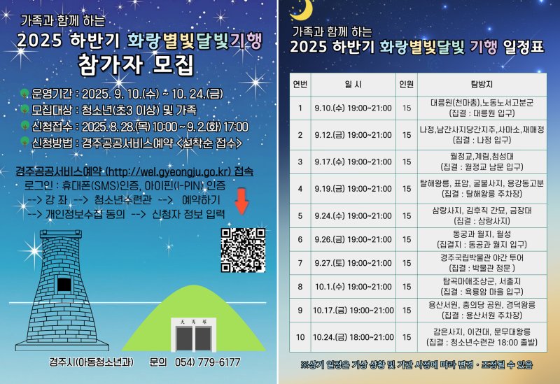 경북 경주시가 지역 가족이 함께하는 '화랑별빛달빛기행' 참가자를 모집한다고 25일 밝혔다. (경주시제공, 재판매 및 DB금지) 2025.8.25/뉴스1