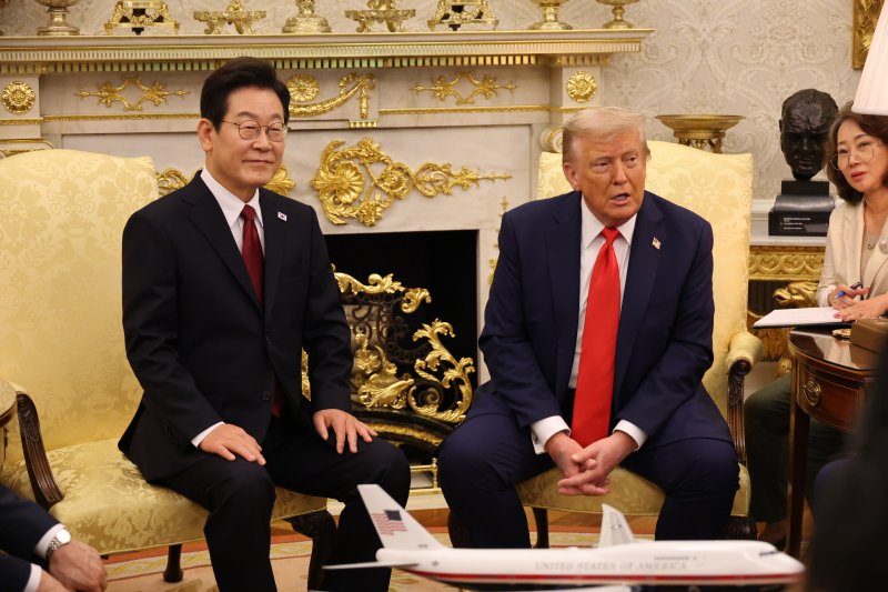 【파이낸셜뉴스 워싱턴(미국)=서영준 기자】이재명 대통령은 25일(현지시간) 도널드 트럼프 미국 대통령에게 "조선 분야 뿐만이 아니라 제조업 분야에서 르네상스가 이뤄지고 있고, 그 과정에서 대한민국도 함께 하게 되기를 기대한다"고 했다.