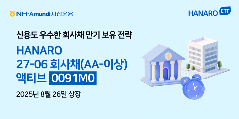 [파이낸셜뉴스] NH-아문디자산운용은 ‘HANARO 27-06 회사채(AA-이상) 액티브 상장지수펀드(ETF)’를 유가증권시장에 상장했다고 26일 밝혔다.