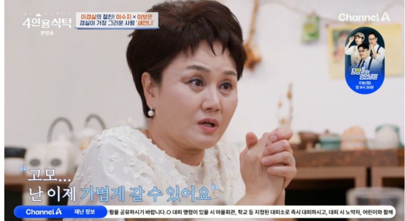 25일 오후 방송된 채널A 예능 프로그램 '절친 토큐멘터리 4인용 식탁'에는 이경실이 요리 연구가 이보은과 코미디언 이수지를 초대해 이야기를 나누는 모습이 그려졌다.