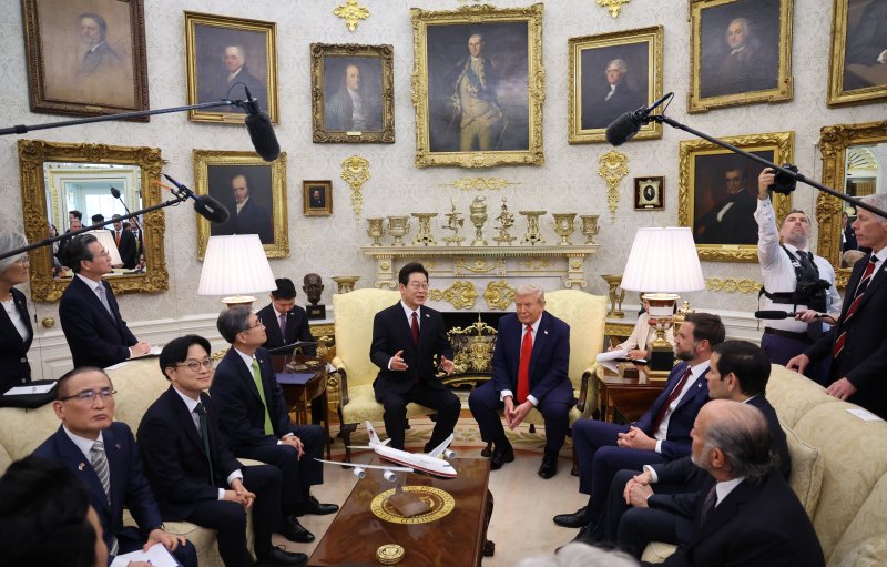 반면 국민의힘은 비판의 목소리를 냈다. 송언석 국민의힘 원내대표는 이날 국회에서 기자들과 만나 "이 대통령이 트럼프 대통령에게 굴욕적 아부를 늘어놓는 것을 국민이 잘 지켜봤을 것"이라며 "결과적으로 기업들의 1500억달러(약 209조원) 투자까지 추가로 갖다 바친 굴욕 외교"라고 했다. 그러면서 "회담 직전 트럼프 대통령이 '숙청', '혁명'을 SNS에서 언급했다"며 "회담 후 공동회견은커녕 배웅조차 하지 않은 것을 보면 정상회담 전체 과정이 역대급 외교 참사"라고 주장했다.