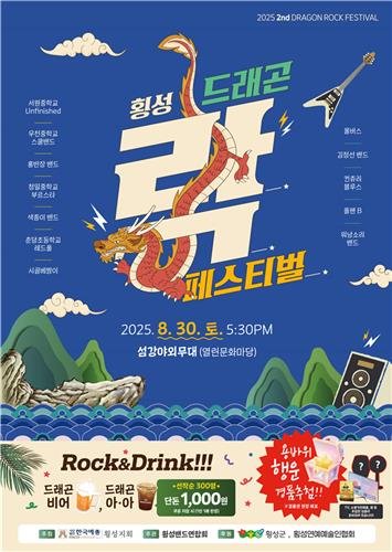 【파이낸셜뉴스 횡성=김기섭 기자】'2025 횡성 드래곤 락 페스티벌'이 오는 30일 섬강 야외무대에서 열린다.